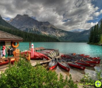 دریاچه EMERALD در کانادا در یک پارک ملی قرار دارد این دریاچه بسیار زیبا آبی به رنگ فیروزه ای دارد و مکان مناسبی برای اسکی و قایقرانی در فصل های مختلف است